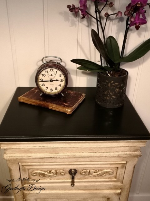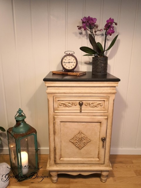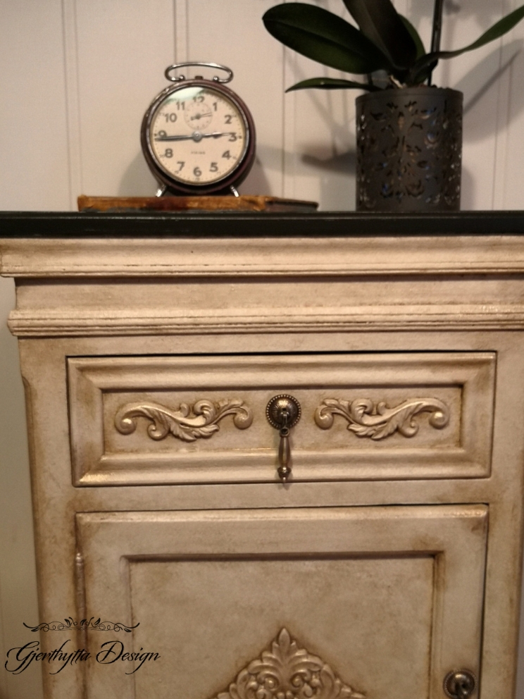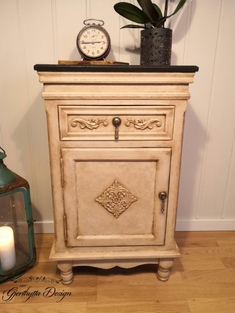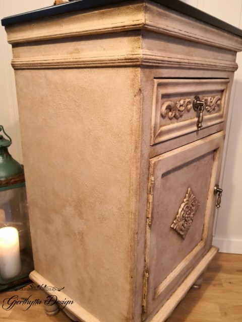 Nydelig nattbord malt med fargene White Cap og Sand Castle fra Silk-All-In-One og Seaspray for tekstur.