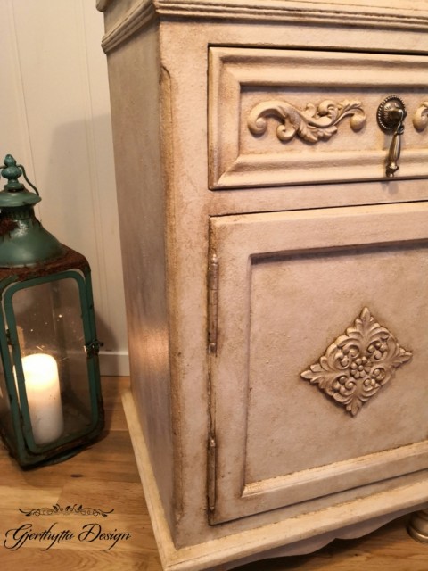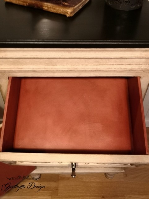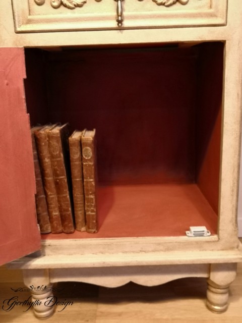 Innvendig malt i fargen Scandinavian Pink fra Annie Sloan. Klar og mørk voks.